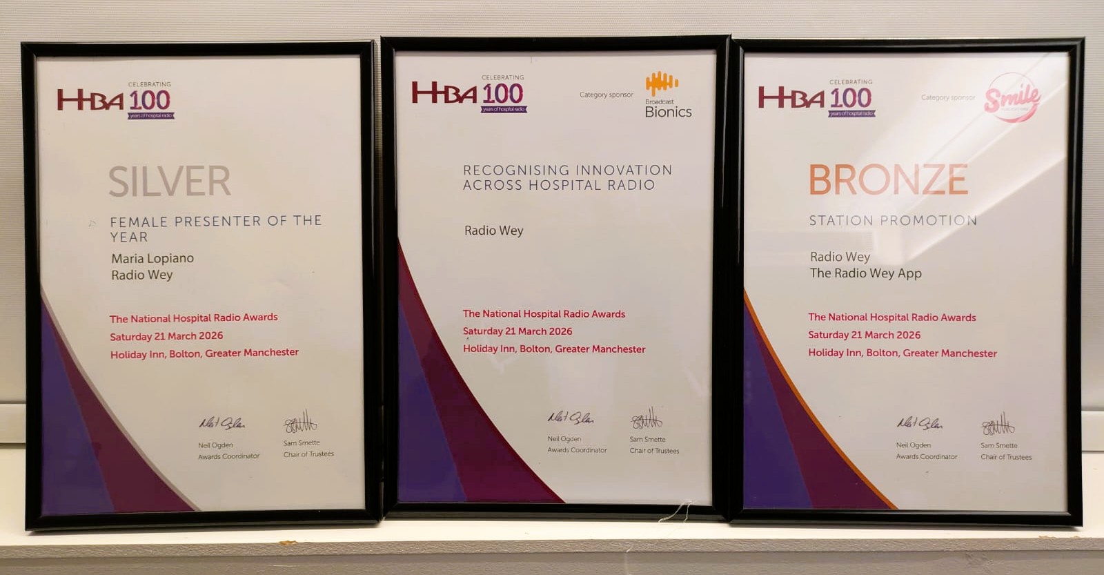 In the 2026 Hospital Broadcasting Association Awards, Radio Wey were lucky enough to come away with three more!